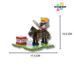 הדגם מציג את סטיב, הדמות הראשית במשחק, כשהוא חובש קסדה זהובה ואוחז בחרב ברזל. סטיב רוכב על סוס משוריין , ולידו בלוק TNT, אחד הפריטים המוכרים במשחק. הדגם יושב על בסיס מרובע שמדמה את העולם של Minecraft, עם דשא ואבן, ומעוצב בסגנון הפיקסלים הייחודי של המשחק.